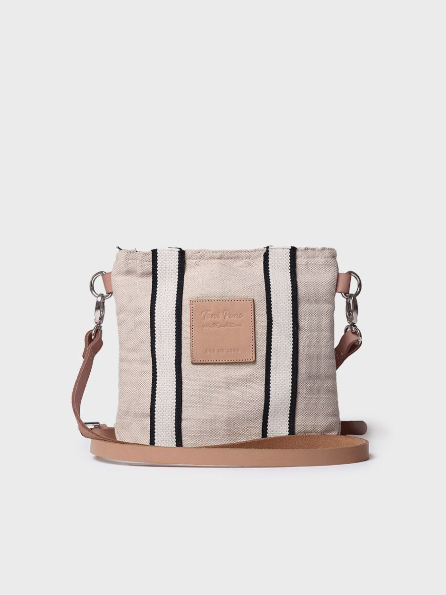 LENA. Este bolso shopper se elabora en yute y algodón. Cuenta con una tira ajustable que permite adaptarla a la altura que mejor convenga. Tiene un cierre con cremallera y prácticos bolsillos interiores. Medidas aproximadas: 21 x 21 cm