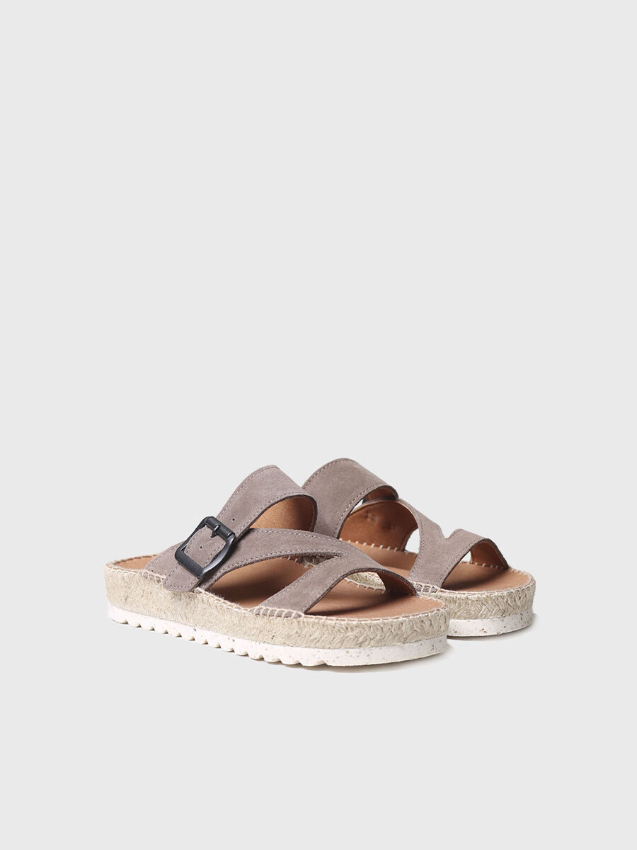 BIBI-A es una sandalia plana con tiras cruzadas en serraje tipo BIO. La suela está hecha de yute y goma y tiene una altura total de 3 cm. La planta interior está forrada en un tejido transpirable para mayor confort. Este diseño cuenta con cierre de hebilla regulable en la tira superior para asegurar una perfecta sujeción. La unión de las tiras y la suela está cosida a mano con un hilo de algodón. Este modelo calza la talla habitual, si estás entre dos tallas te recomendamos escoger la más grande.
