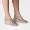 TRITON, unas sandalias alpargatas para mujer elegantes y cómodas. Estas alpargatas de cuña para mujer están fabricadas en tejido de algodón con un acabado brillante, lo que les confiere un toque especial. Con una cuña de yute de 6 cm de altura total 4 cm de tacón y 2 cm de plataforma ofrecen un estilo atractivo y seguro. La suela de goma antideslizante brinda estabilidad, mientras que la plantilla interior forrada en tejido asegura confort. Dos bandas elásticas garantizan una sujeción óptima al pie, y la unión de la tela y la suela está cosida a mano con hilo de algodón, además de contar con un refuerzo en la punta. Este modelo es 100% vegano y se ajusta a la talla habitual; si estás entre dos tallas, elige la más grande.